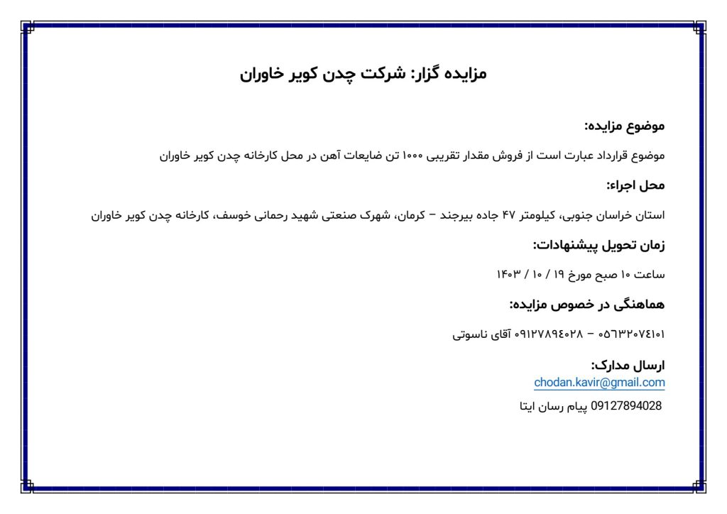 مزایده ها و مناقصات شرکت چدن کویر خاوران